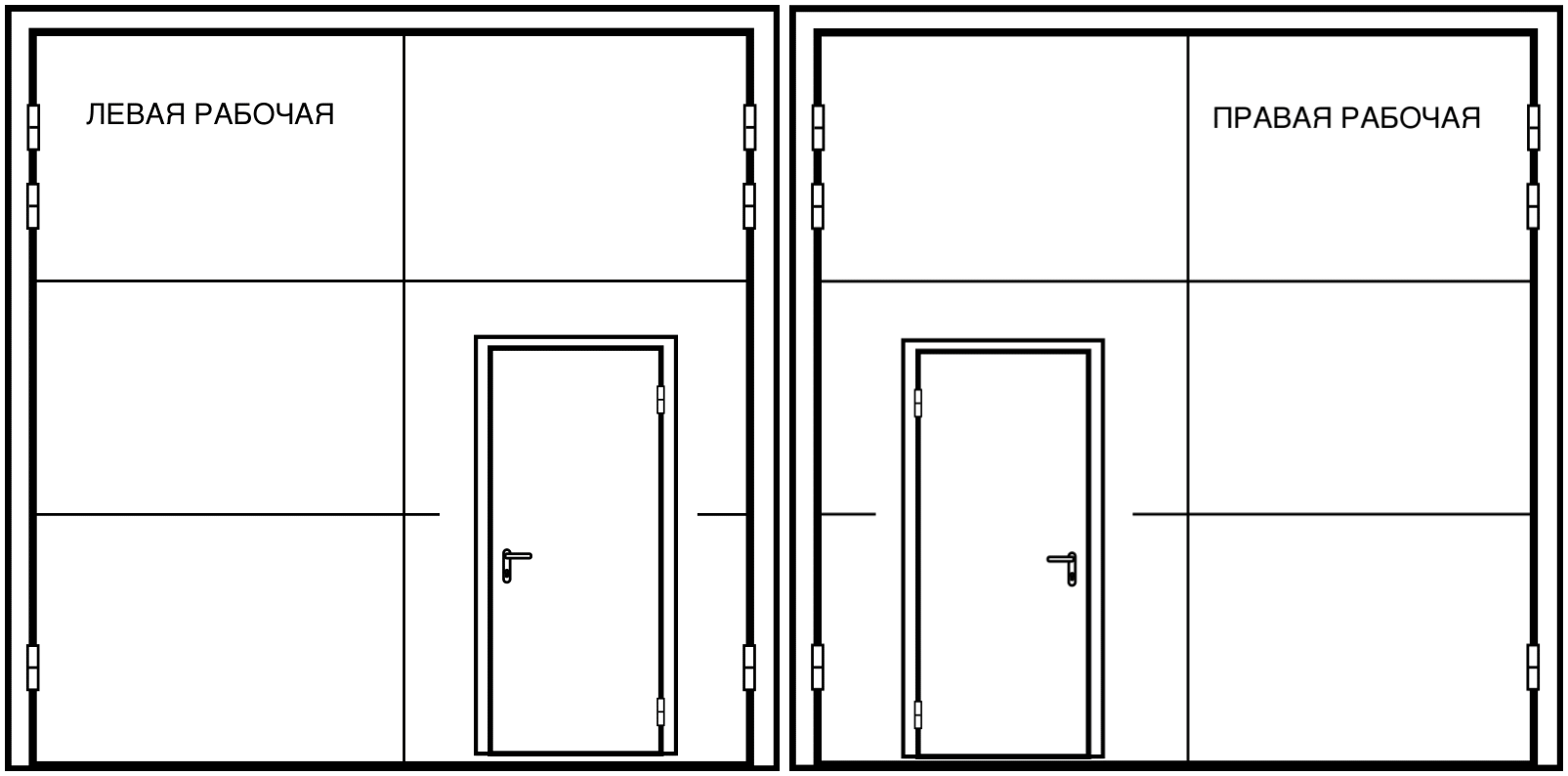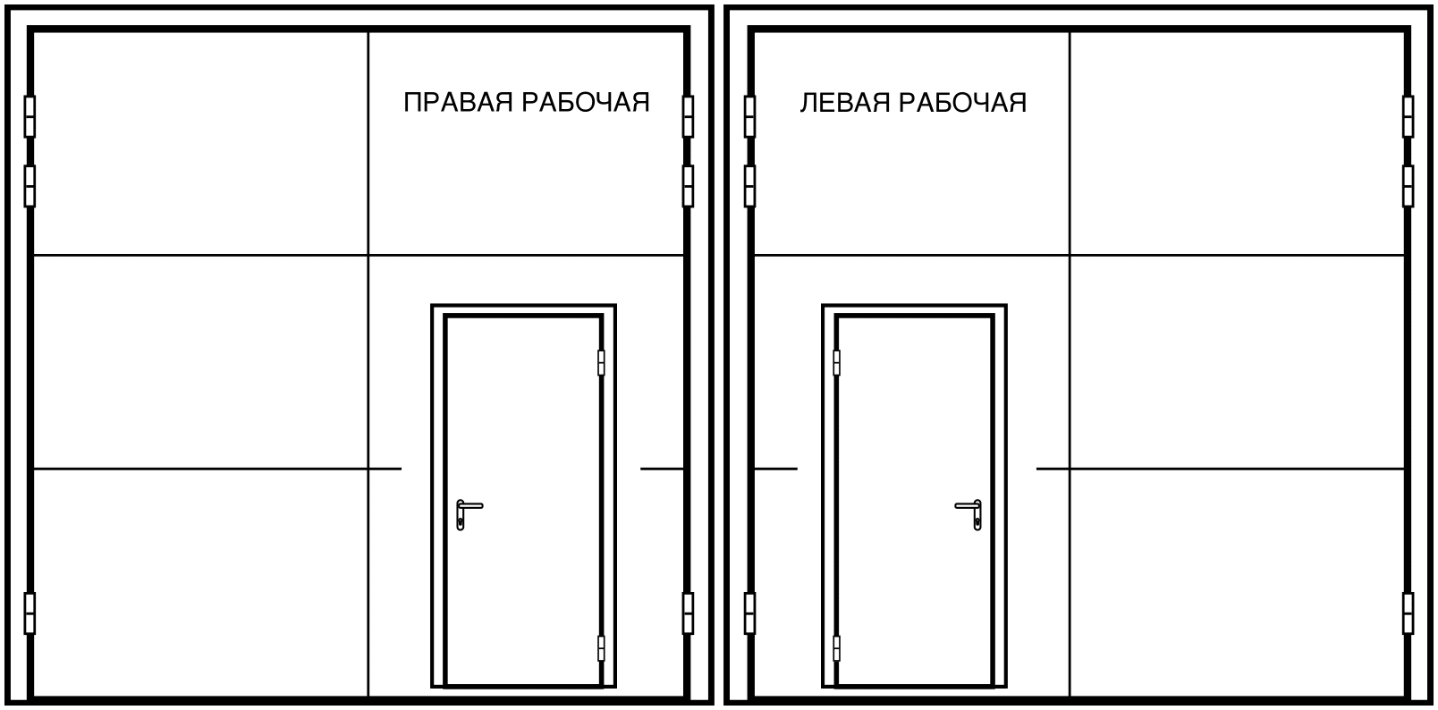 Ворота распашные (3,0 мм+1,4 мм рекомендовано при размерах более 3*3 м) противопожарные Ei60 / технические двупольные равнопольные: короб закрытого типа усиленный из сложно гнутого профиля из стали З мм, с / без порога, короб угловой с наличником по 50 мм / торцевой / разборный (при необходимости делаем по умолчанию). Полотна коробчатого типа (типа «СЭНДВИЧ») из стали 1,4 мм с наполнением базальтовой плитой 60-80 мм и усилением по периметру профилем, петли капли 160*25 мм по З шт. на полотно. Замок «Страж» с черной ручкой на планке на рабочей створке, не рабочая створка на шпингалетах (при необходимости ставим гаражные задвижки по умолчанию). Уплотнение по периметру (Е+Д), термолента (если Ei60). Ral стандарт шагрень, открывание только наружу.